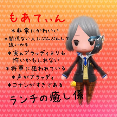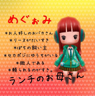 「ギルドのママ」ことめぐぉみさんが、 ギルド「お子様ランチ」のメンバーを紹介してくれました。 画像をくりっくすると拡大されます。 (画像は頂いた順に掲載しています)